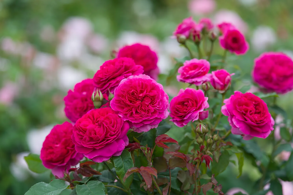 English garden roses, including roses by Peter Beales and David Austin, are a distinct class of roses blending the charming,, romantic, cup-shaped blooms and intoxicating fragrance of Old Roses with the wide color palette and repeat-flowering ability of modern hybrid teas. In this category, we have included all roses with the same look. They are characterized by a bushy shrub habit, excellent disease resistance, and winter hardiness.